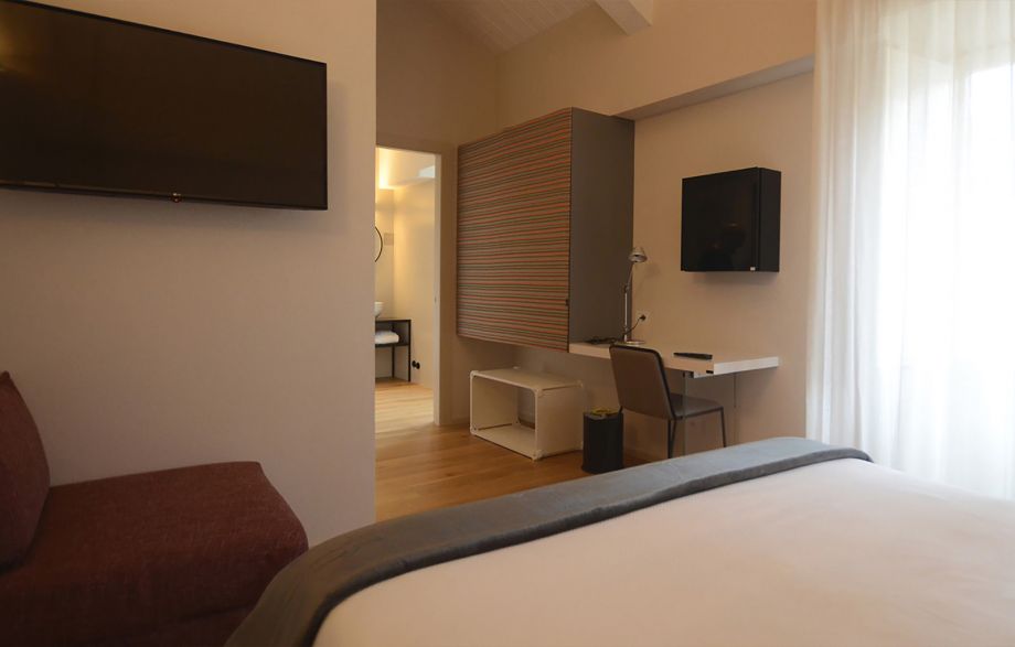 Camera da 19mq, letto matrimoniale, wi-fi gratuito, divano letto matrimoniale, mini-bar, TV LCD, Cassaforte, Telefono, Asciugacapelli, possibilità di culla aggiunta gratuitamente, set di cortesia.